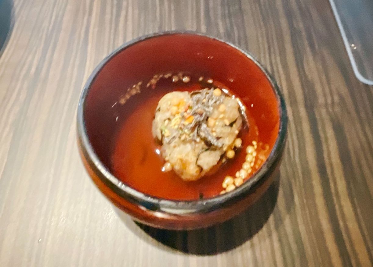 焼きおにぎりにだし汁をかけて食べるんですが、昆布やさきいかがおにぎりの中に入っていてとっても美味しかったです。
