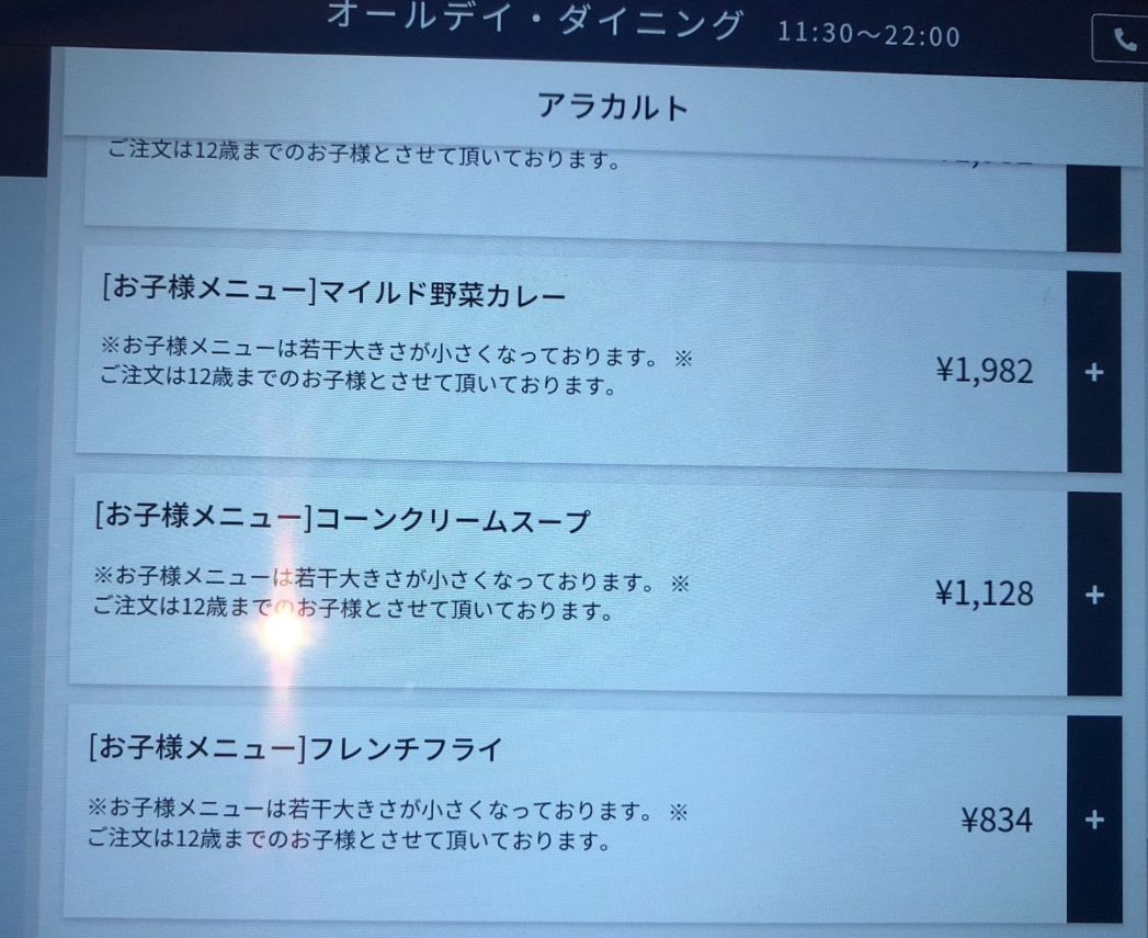| お子様メニューのコーンクリームスープ | 1128円 |
