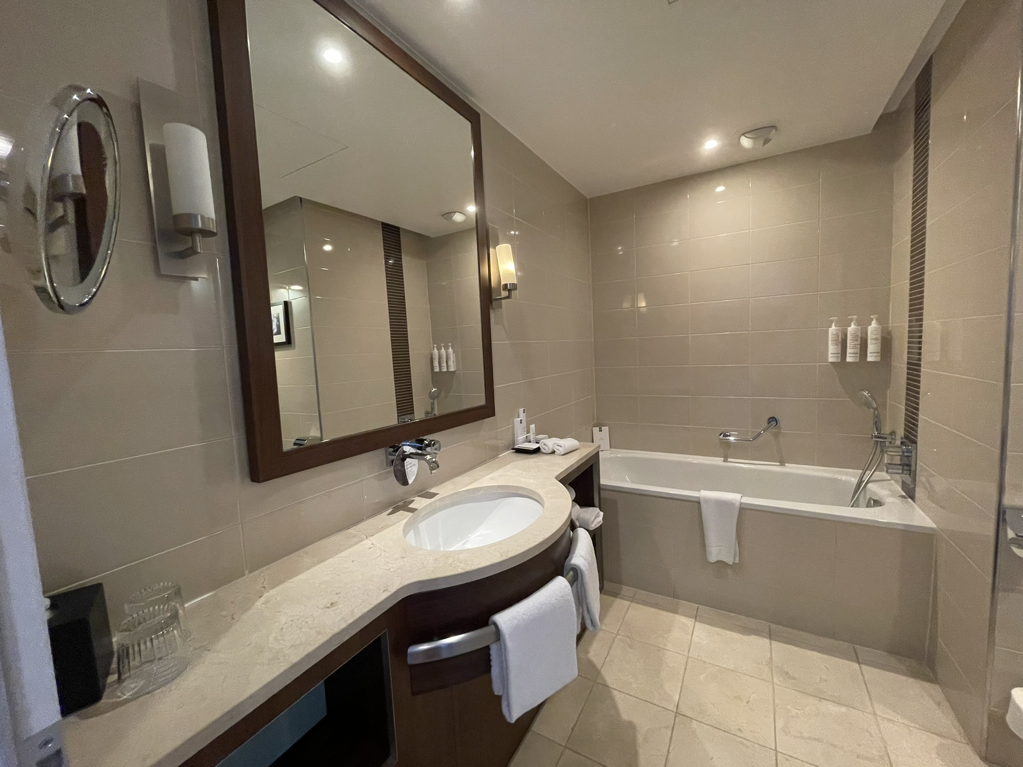 スイートの割にはバスタブもないしバスルームは狭めですね。シャンプー・コンディショナー・バスジェルは壁掛け。