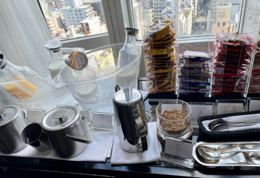 残念ながらティータイムは利用できなかったのですが、ミニゼリーやクッキー、グミなどの手軽なお菓子があり、コーヒー・紅茶・冷蔵庫の中のジュース類がいただけます。